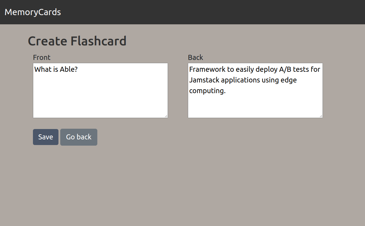 Memory Cards is a flashcard application built with Ruby, Sinatra, and PostgreSQL